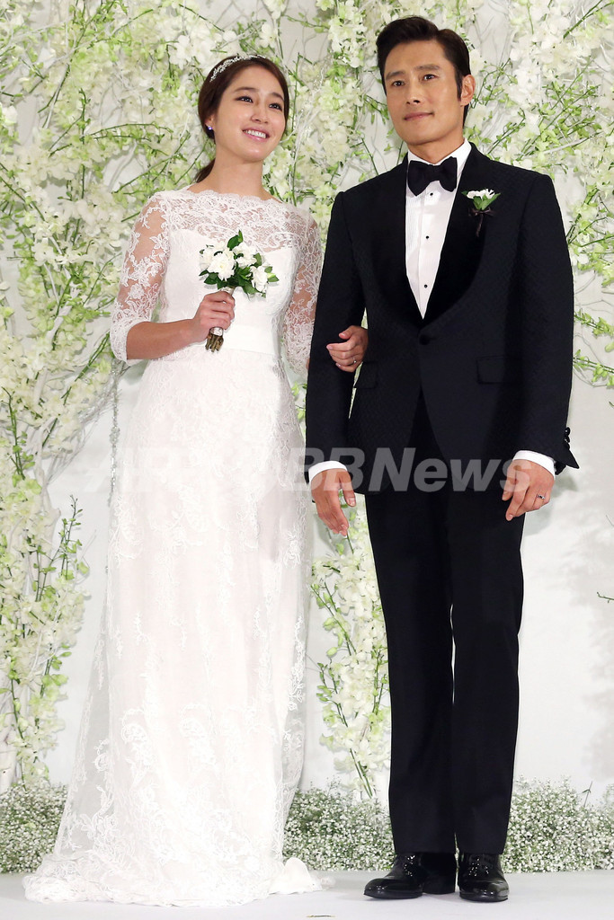 韓国・ソウル(Seoul)のグランドハイアットホテル(Grand Hyatt Seoul Hotel)で10日、俳優のイ・ビョンホン(Lee Byung-hun)と女優のイ・ミンジョン(Lee Min-Jung)との結婚式が行われた。写真は、フォトセッションに登場した俳優のイ・ビョンホンと女優のイ・ミンジョン(2013年8月10日撮影)。(c)STARNEWS