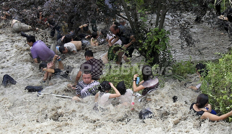 【8月25日 AFP】中国の浙江(Zhejiang)省海寧(Haining)市で22日、河口から川の水が逆流する毎年恒例の現象「海寧潮」による高波が堤防を越え、岸辺に集まっていた見物客らが押し流された。