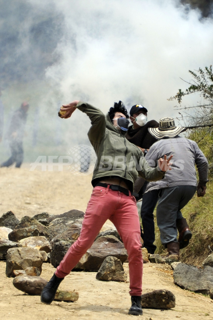 【8月25日 AFP】南米コロンビアでは19日から、農業従事者らが政府補助金や土地利用の拡大などを求め、国内各地でデモを行っている。クンディナマルカ(Cundinamarca)州ラカレラ(La Calera)では23日、道路を封鎖したデモ隊が投石するなどして機動隊と衝突した。