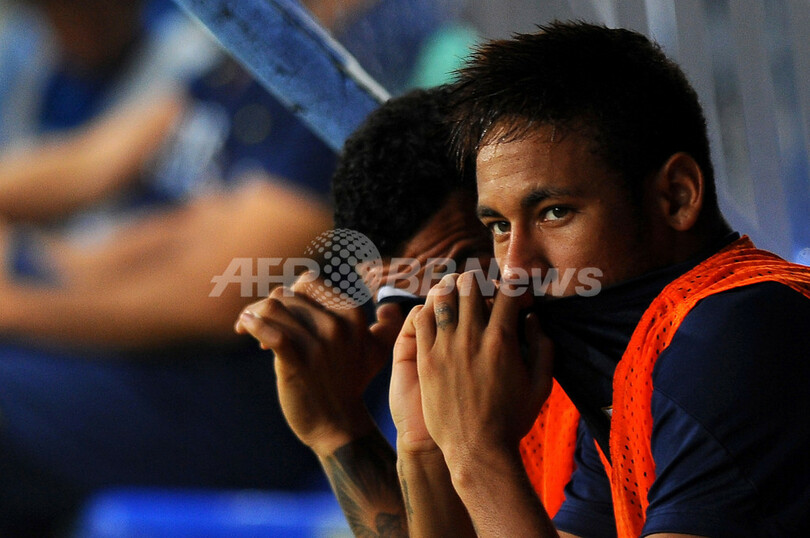 ベンチで戦況を見守るFCバルセロナのネイマール(Neymar da Silva Santos Junior、2013年8月25日撮影)。(c)AFP/JORGE GUERRERO