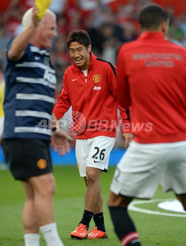 試合前の練習に臨むマンチェスター・ユナイテッドの香川真司(Shinji Kagawa、2013年8月26日撮影)。(c)AFP/ANDREW YATES