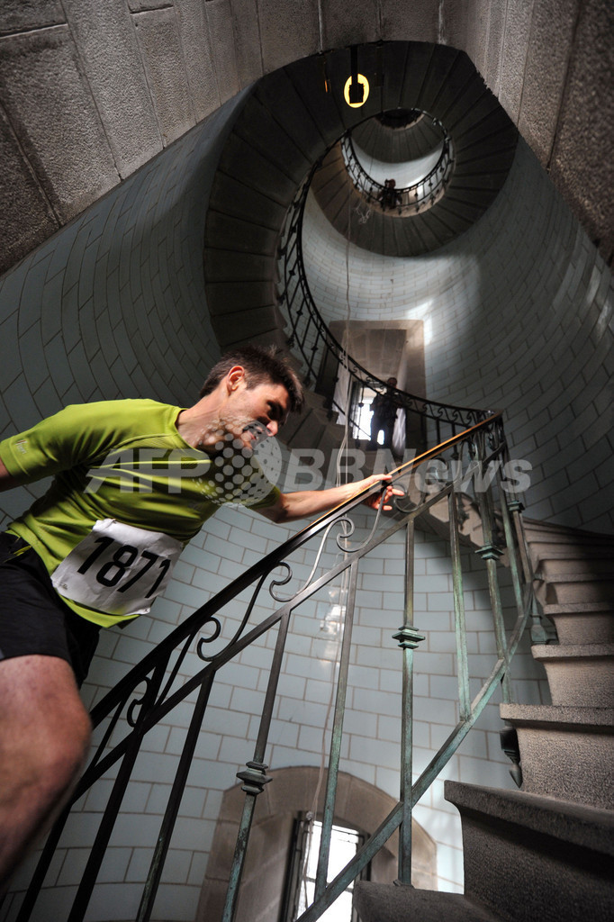 ニュース ライフ こぼれ話 走りながら目が回る?灯台の階段を駆け上るレース開催 2013年8月26日 18:54 発信地:パンマール/フランス [ ヨーロッパ フランス ] このニュースをシェア ‹ › ❮ 1/18 ❯ フランス北西部のパンマール(Penmarch)にあるエキュミュール(Eckmuhl)灯台で24日、高さ60メートル、合計307段の階段を駆け上るレースが開催された。灯台の完成から110年を記念して2007年から始まったこのレースに、今年は150人ほどが参加。優勝したのはQuentin Thomasさんで、自身が昨年記録した自己ベストタイム52秒を上回る47秒で駆け上がった。写真は、灯台内の階段を駆け上る、優勝したQuentin Thomasさん(2013年8月24日撮影)。(c)AFP/FRANK PERRY 画像作成中 ! 【8月26日 AFP】フランス北西部のパンマール(Penmarch)にあるエキュミュール(Eckmuhl)灯台で24日、高さ60メートル、合計307段の階段を駆け上るレースが開催された。灯台の完成から110年を記念して2007年から始まったこのレースに、今年は150人ほどが参加。優勝したのはQuentin Thomasさんで、自身が昨年記録した自己ベストタイム52秒を上回る47秒で駆け上がった。(c)AFP ライフ 一覧へ> メディア・報道関係・法人の方向け 写真・動画 購入のお問合せ>