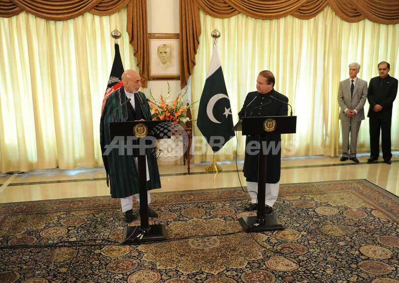 【8月27日 AFP】アフガニスタンのハミド・カルザイ(Hamid Karzai)大統領は26日、パキスタンの首都イスラマバード(Islamabad)を訪問し、ナワズ・シャリフ(Nawaz Sharif)首相と初めて会談した。カルザイ大統領はパキスタンに、アフガン政府とアフガンの旧支配勢力タリバン(Taliban)の和平交渉の仲介を要請するとともに、対イスラム過激派の共同作戦を両国内で実施することを呼びかけた。