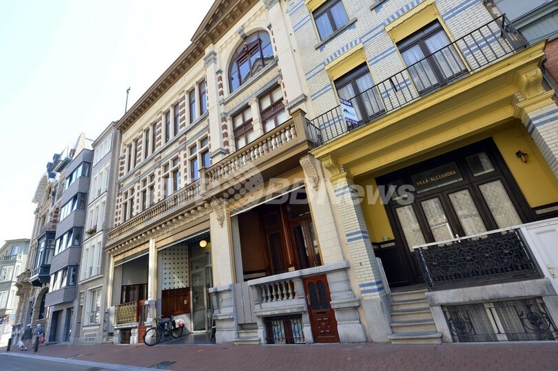 ベルギーのブランケンベルヘ(Blankenberge)で、デンマークの玩具大手レゴ(Lego)社の公認プロ、ディルク・ドゥノワエル(Dirk Denoyelle)さんがレゴブロックで作った作品のモデルとなったエポック(Belle Epoque)時代のファサード(建物正面の装飾)を施した建物(2013年8月26日撮影)。(c)AFP/BELGA/BENOIT DOPPAGNE