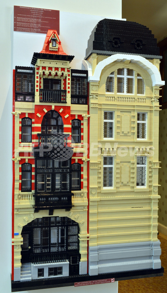 ベルギーのブランケンベルヘ(Blankenberge)で、デンマークの玩具大手レゴ(Lego)社の公認プロ、ディルク・ドゥノワエル(Dirk Denoyelle)さんがレゴブロックで作ったベル・エポック(Belle Epoque)時代のファサード(建物正面の装飾)を施した建物(2013年8月26日撮影)。(c)AFP/BENOIT DOPPAGNE