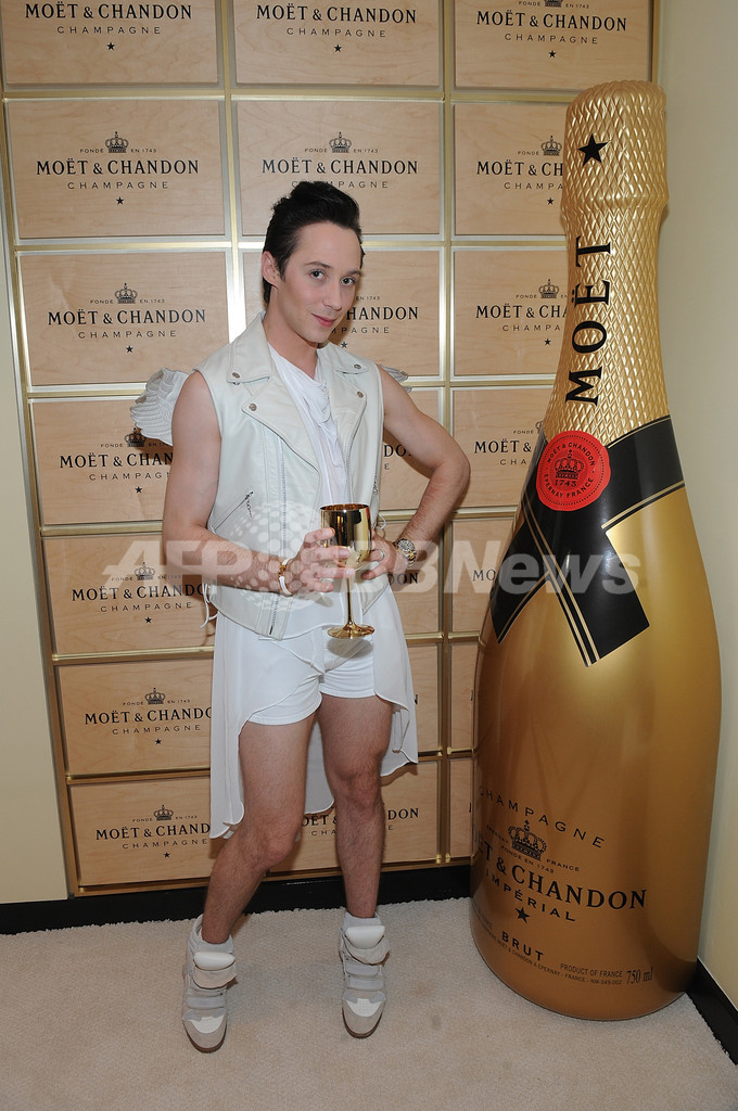 この日、パーティに出席したフィギュアスケーターのジョニー・ウェア(Johnny Weir)は、「ジェレミースコット×アディダス(JEREMY SCOTT×ADIDAS)」の羽付きジャケットと「イザベル・マラン(Isabel Marant)」のウェッジスニーカーに「エルメス(Hermes)」のバーキンをコーディネートした。(c)MODE PRESS