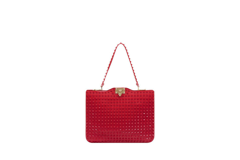 今シーズン、NOIRカプセルコレクションでは、スモークガラスのようなNOIR PVCや、レーザーカットで表現したレオパード柄の ポニースキンなど、新しいラグジュアリーな素材が加わった。ニュアンスやタイプの異なるブラックに、鈍い光のルテニウムスタッズが、エレガントでありながらロッカースタイルを完成させるバッグ、シューズや、グローブなどバリエーション豊かなアイテムが揃う。 FALL 2013に誕生したROUGEカプセルコレクションは、アイコニックなヴァレンティノのレッドカラーが特徴。半透明のPVC素材やレザーに、同色の赤いラッカースタッズを前面にあしらい、エッジーなテイストを加えた。
