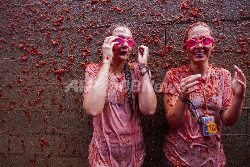 ニュース ライフ こぼれ話 人も道路も真っ赤、スペイン恒例のトマト祭りに2万人 2013年8月29日 8:54 発信地:ブニョール/スペイン [ ヨーロッパ スペイン ] このニュースをシェア ‹ › ❮ 12/15 ❯ スペイン・バレンシア(Valencia)近郊のブニョール(Bunol)で28日、熟れたトマトを投げ合う毎年恒例の祭り「トマティーナ(Tomatina)」が開催された。2万人の参加者が130トンのトマトを投げ付け合い、人も道路も真っ赤に染まった(2013年8月28日撮影)。(c)AFP/GABRIEL GALLO 画像作成中 ! 【8月29日 AFP】スペイン・バレンシア(Valencia)近郊のブニョール(Bunol)で28日、熟れたトマトを投げ合う毎年恒例の祭り「トマティーナ(Tomatina)」が開催された。2万人の参加者が130トンのトマトを投げ付け合い、人も道路も真っ赤に染まった。(c)AFP ライフ 一覧へ> メディア・報道関係・法人の方向け 写真・動画 購入のお問合せ>
