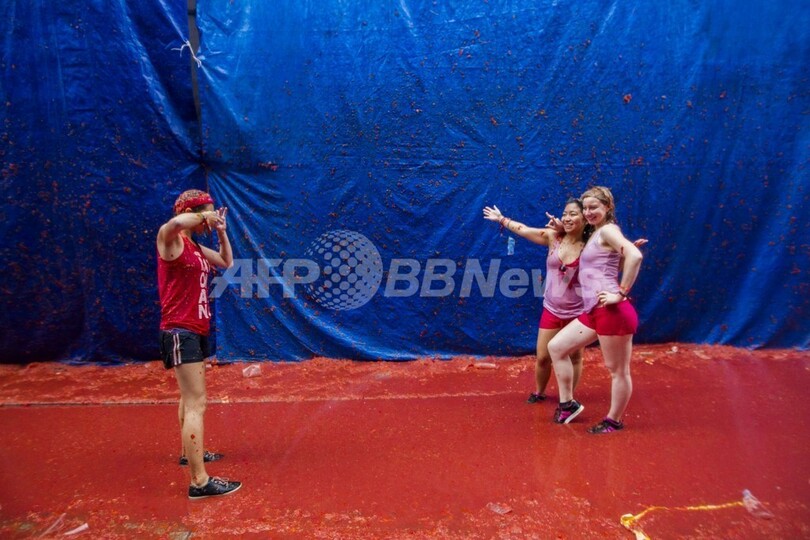 ニュース ライフ こぼれ話 人も道路も真っ赤、スペイン恒例のトマト祭りに2万人 2013年8月29日 8:54 発信地:ブニョール/スペイン [ ヨーロッパ スペイン ] このニュースをシェア ‹ › ❮ 5/15 ❯ スペイン・バレンシア(Valencia)近郊のブニョール(Bunol)で28日、熟れたトマトを投げ合う毎年恒例の祭り「トマティーナ(Tomatina)」が開催された。2万人の参加者が130トンのトマトを投げ付け合い、人も道路も真っ赤に染まった(2013年8月28日撮影)。(c)AFP/GABRIEL GALLO 画像作成中 ! 【8月29日 AFP】スペイン・バレンシア(Valencia)近郊のブニョール(Bunol)で28日、熟れたトマトを投げ合う毎年恒例の祭り「トマティーナ(Tomatina)」が開催された。2万人の参加者が130トンのトマトを投げ付け合い、人も道路も真っ赤に染まった。(c)AFP ライフ 一覧へ> メディア・報道関係・法人の方向け 写真・動画 購入のお問合せ>
