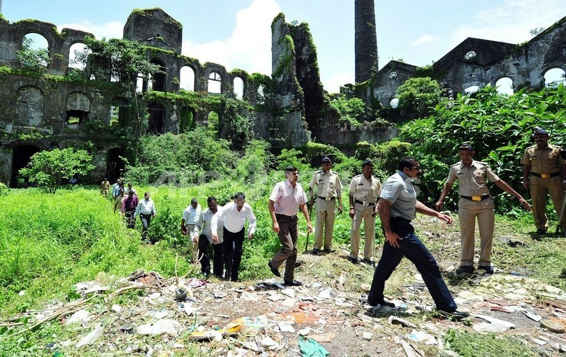 【8月29日 AFP】インド西部ムンバイ(Mumbai)で先週発生した取材中の女性カメラマン(23)が集団レイプされた事件で、地元警察当局は28日、事件現場となった再開発予定の廃工場で5人の容疑者立ち会いのもと現場検証を行った。逮捕された5人の容疑者も黒いフードをかぶって同行した。