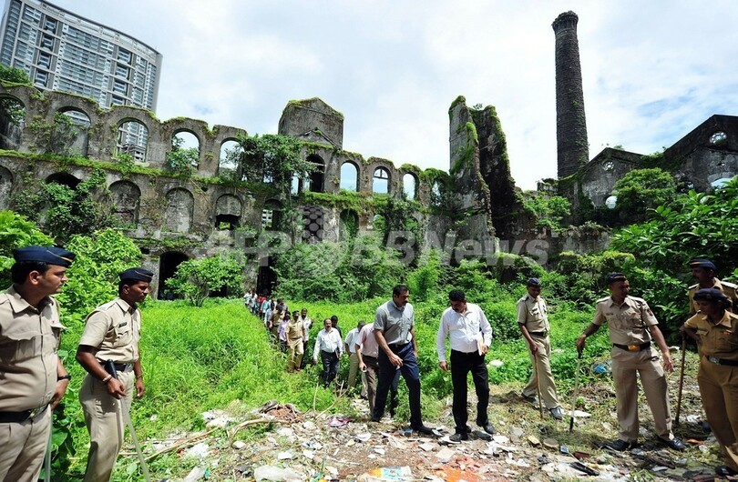 【8月29日 AFP】インド西部ムンバイ(Mumbai)で先週発生した取材中の女性カメラマン(23)が集団レイプされた事件で、地元警察当局は28日、事件現場となった再開発予定の廃工場で5人の容疑者立ち会いのもと現場検証を行った。逮捕された5人の容疑者も黒いフードをかぶって同行した。