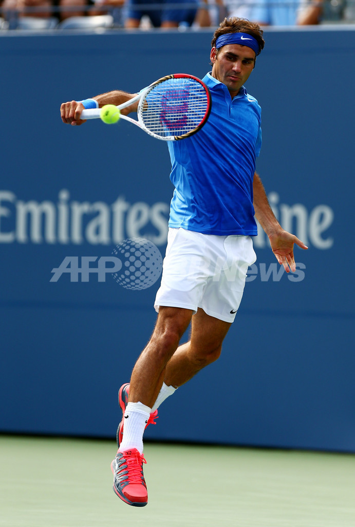 リターンを狙うロジャー・フェデラー(2013年8月29日撮影)。(c)AFP/Getty Images/Dan Istitene
