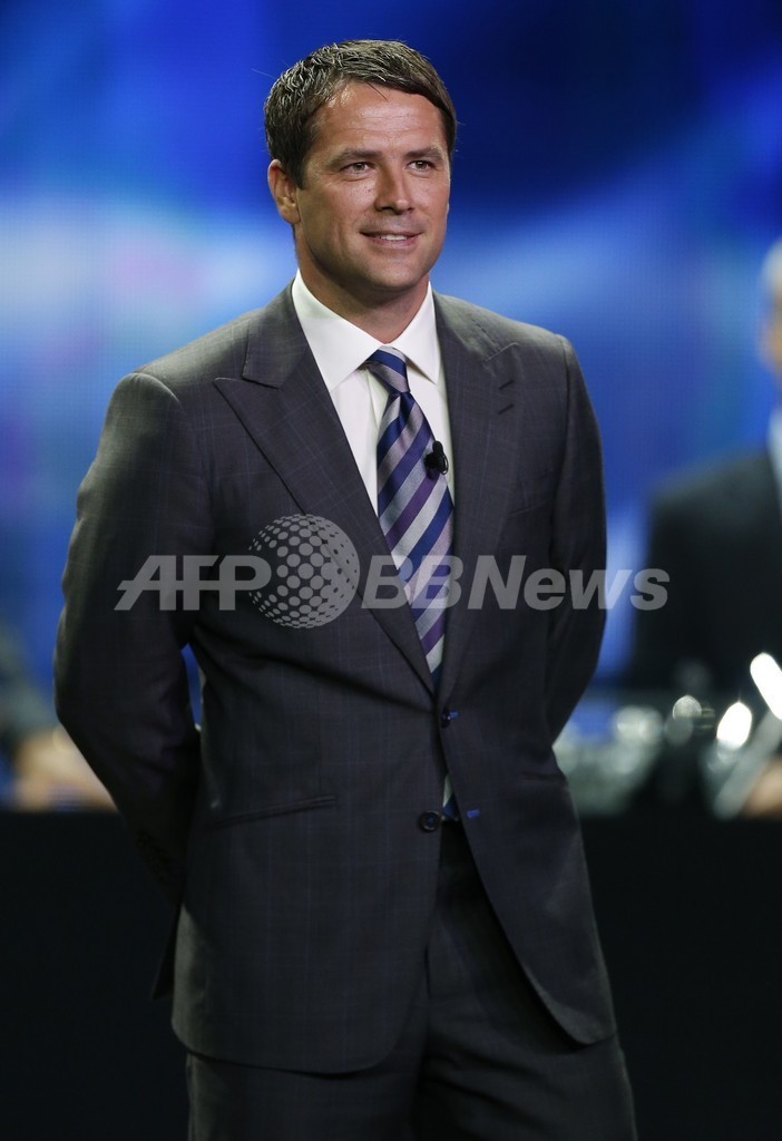 組み合わせ抽選会に臨むマイケル・オーウェン(Michael Owen)氏(2013年8月29日撮影)。(c)AFP/VALERY HACHE