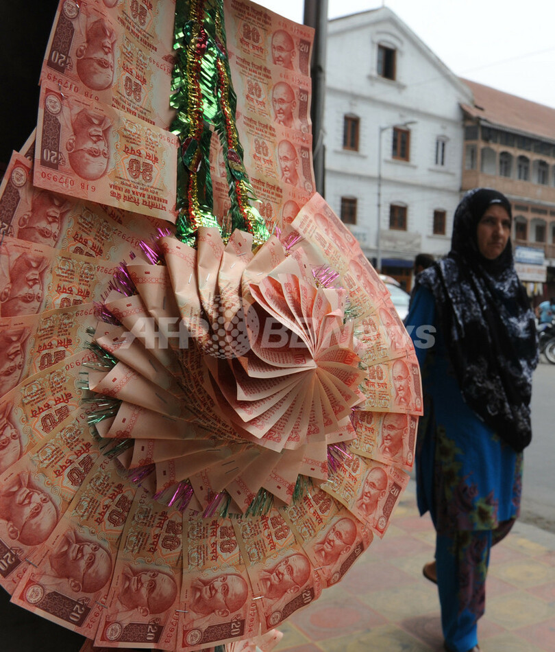ニュース 政治・経済 ルピー安で紙切れ同然?ルピー紙幣が「花飾り」に インド 2013年9月1日 19:11 発信地:スリナガル/インド [ アジア・オセアニア インド ] このニュースをシェア ‹ › ❮ 6/7 ❯ インド北部スリナガル(Srinagar)の市場で、最近のルピー安を受け、ルピー紙幣で作った結婚式用の花飾りを売る店が現れた。米国によるシリア軍事介入への懸念に国内の経済危機が相まってルピーは8月28日に対ドルで約4%下落し、過去最安値を更新した(2013年8月28日撮影)。(c)AFP/Rouf BHAT 画像作成中 ! 【9月1日 AFP】インド北部スリナガル(Srinagar)の市場で、最近のルピー安を受け、ルピー紙幣で作った結婚式用の花飾りを売る店が現れた。米国によるシリア軍事介入への懸念に国内の経済危機が相まってルピーは8月28日に対ドルで約4%下落し、過去最安値を更新した。(c)AFP 政治・経済 一覧へ> メディア・報道関係・法人の方向け 写真・動画 購入のお問合せ>