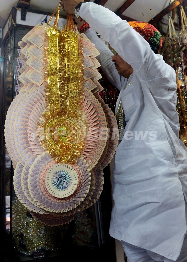 ニュース 政治・経済 ルピー安で紙切れ同然?ルピー紙幣が「花飾り」に インド 2013年9月1日 19:11 発信地:スリナガル/インド [ アジア・オセアニア インド ] このニュースをシェア ‹ › ❮ 3/7 ❯ インド北部スリナガル(Srinagar)の市場で、最近のルピー安を受け、ルピー紙幣で作った結婚式用の花飾りを売る店が現れた。米国によるシリア軍事介入への懸念に国内の経済危機が相まってルピーは8月28日に対ドルで約4%下落し、過去最安値を更新した(2013年8月28日撮影)。(c)AFP/Rouf BHAT 画像作成中 ! 【9月1日 AFP】インド北部スリナガル(Srinagar)の市場で、最近のルピー安を受け、ルピー紙幣で作った結婚式用の花飾りを売る店が現れた。米国によるシリア軍事介入への懸念に国内の経済危機が相まってルピーは8月28日に対ドルで約4%下落し、過去最安値を更新した。(c)AFP 政治・経済 一覧へ> メディア・報道関係・法人の方向け 写真・動画 購入のお問合せ>
