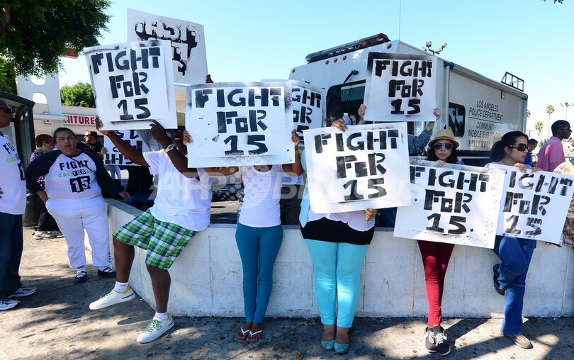 賃上げを要求する活動は昨年11月、ニューヨークで約200人の従業員が参加して始まったが、その後、急速に各地に拡大。7月には、シカゴ(Chicago)やデトロイト(Detroit)、フリント(Flint)、カンザスシティー(Kansas City)、ミルウォーキー(Milwaukee)、セントルイス(St. Louis)でストが行われた。