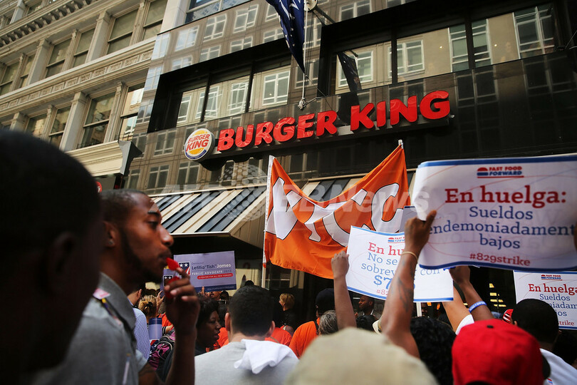 賃上げを要求する活動は昨年11月、ニューヨークで約200人の従業員が参加して始まったが、その後、急速に各地に拡大。7月には、シカゴ(Chicago)やデトロイト(Detroit)、フリント(Flint)、カンザスシティー(Kansas City)、ミルウォーキー(Milwaukee)、セントルイス(St. Louis)でストが行われた。