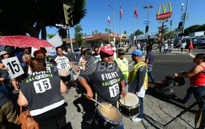 【8月30日 AFP】マクドナルド(McDonald's)をはじめとするファストフードチェーン大手の従業員数千人が29日、全米各地で最低賃金の引き上げを要求するストを行った。主催者側は、2000億ドル(約19兆6000億円)の市場規模を持つ米ファストフード業界で行われた「過去最大規模のスト」としている。
