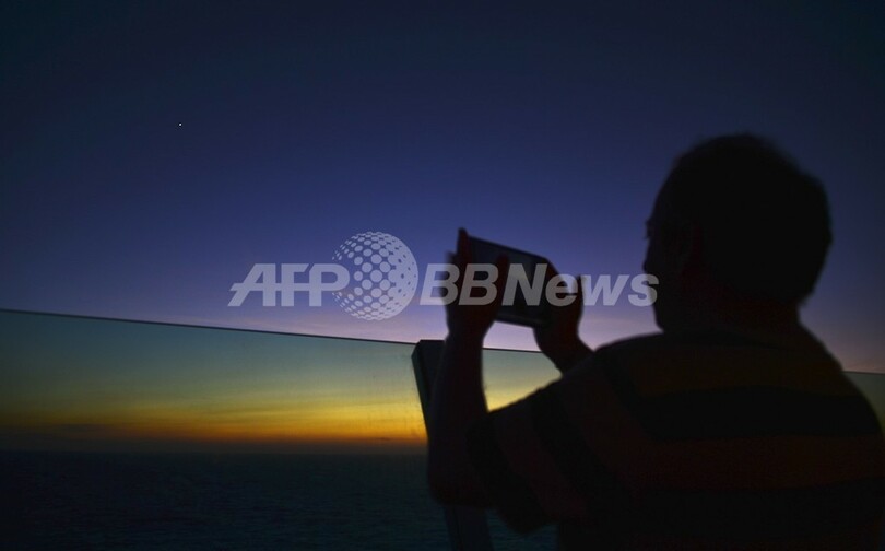 写真は、ウィレムスタット港で夕日の写真を撮影する観光客(2013年8月29日撮影)。(c)AFP/Luis Acosta