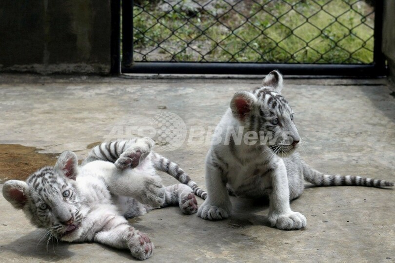 ニュース ライフ こぼれ話 ピンクの肉球がキュート、仲良しホワイトタイガーの赤ちゃん 2013年8月30日 17:46 発信地:パスルアン/インドネシア [ アジア・オセアニア インドネシア ] このニュースをシェア ‹ › ❮ 2/2 ❯ インドネシア・パスルアン(Pasuruan)郊外のプリンゲン(Pringen)にあるサファリパークで遊ぶ7月に生まれたホワイトタイガーの赤ちゃん(2013年8月29日撮影)。(c)AFP/JUNI KRISWANTO 画像作成中 ! 【8月30日 AFP】インドネシア・パスルアン(Pasuruan)郊外のプリンゲン(Pringen)にあるサファリパークで、間もなく生後2か月を迎えるホワイトタイガーの赤ちゃん3匹がすくすく成長している。母親の「カルティカ(Kartika)」が7月5日に産んだ3匹は、それぞれ「バドリアー(Badriah)」「ドライサ(d'Raisa)」「サルサビラ(Salsabila)」と名付けられた。(c)AFP ライフ 一覧へ> メディア・報道関係・法人の方向け 写真・動画 購入のお問合せ>