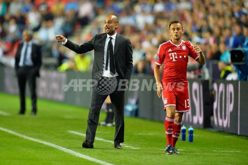 ピッチサイドで指示を出すバイエルン・ミュンヘンのジョゼップ・グアルディオラ(Josep Guardiola)監督(中央、2013年8月30日撮影)。(c)AFP/ODD ANDERSEN