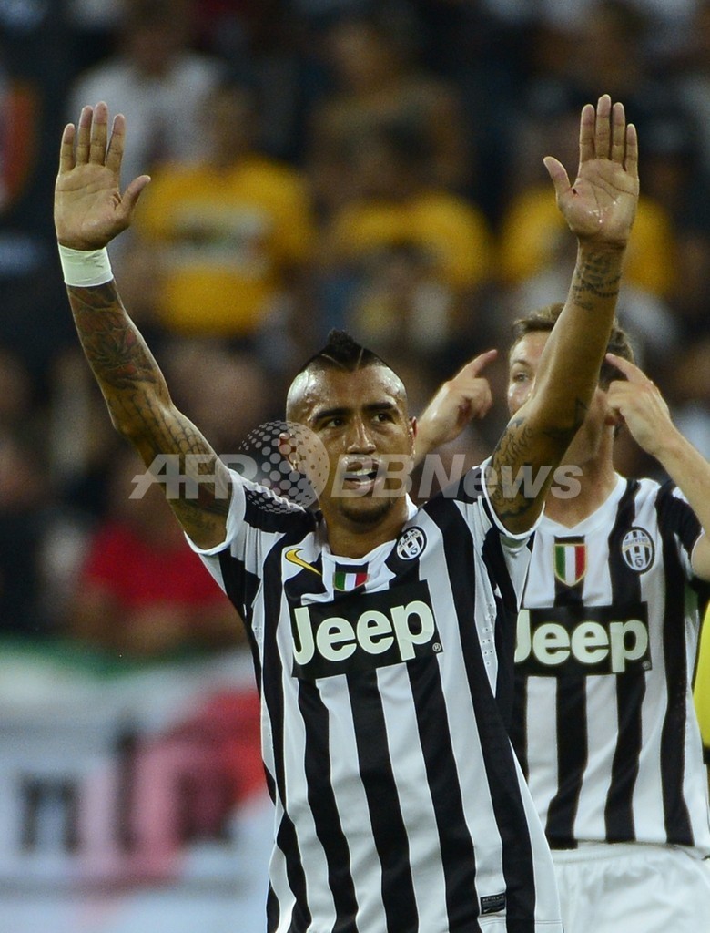 得点を決め喜ぶユベントスのアルトゥーロ・ビダル(Arturo Vidal、2013年8月31日撮影)。(c)AFP/OLIVIER MORIN