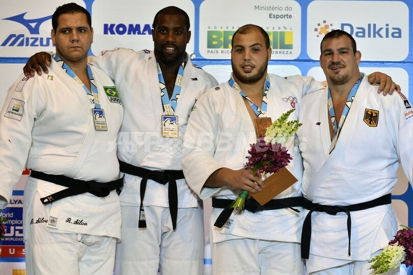 一方、100キロ級ではアゼルバイジャンのエルハン・ママドフ(Elkhan Mammadov)が優勝し、オランダのヘンク・フロル(Henk Grol)が2位に、チェコのルカシュ・クルパレク(Lukas Krpalek)とドイツのディミトリ・ペテルス(Dimitri Peters)が3位となった。(c)AFP