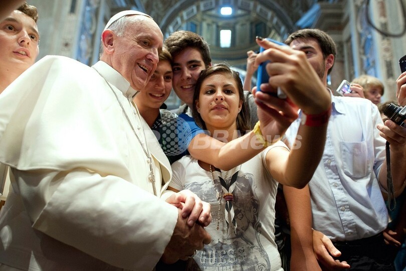 ニュース ライフ こぼれ話 ローマ法王が「自分撮り」?携帯電話で記念撮影 2013年8月31日 17:20 発信地:ローマ/イタリア [ ヨーロッパ イタリア ] このニュースをシェア ‹ › ❮ 1/2 ❯ イタリア・ローマ(Rome)の聖アウグスチノ教会(Church of Saint Augustine)で、スマートフォンで若者たちと記念撮影するフランシスコ(Francis)法王(2013年8月28日撮影)。(c)AFP/OSSERVATORE ROMANO/FRANCESCO SFORZA 画像作成中 ! 【8月31日 AFP】ローマ・カトリック教会のフランシスコ(Francis)法王は28日、イタリア・ローマ(Rome)にある聖アウグスチノ教会(Church of Saint Augustine)でミサを行い、終了後に若者たちとの記念撮影に応じた。法王の「自分撮り」にも見える写真は、この後フェイスブック(Facebook)に投稿され、ソーシャルメディア上で瞬く間に広まった。(c)AFP ライフ 一覧へ> メディア・報道関係・法人の方向け 写真・動画 購入のお問合せ>