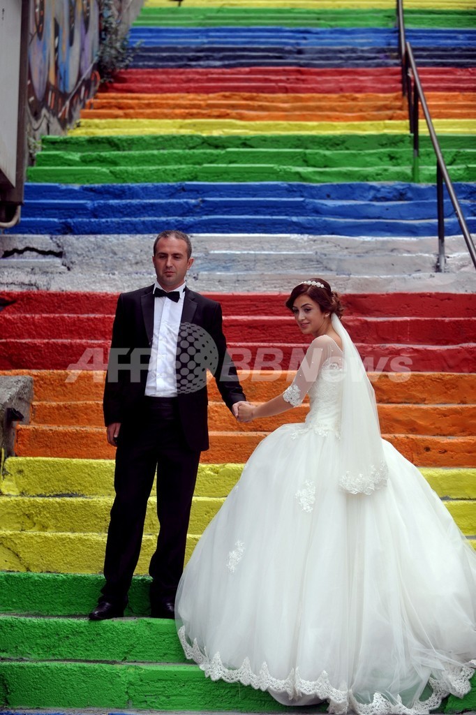 ニュース ライフ 虹色の階段を上ろう!トルコ・イスタンブール 2013年9月1日 9:19 発信地:イスタンブール/トルコ [ 中東・北アフリカ トルコ ] このニュースをシェア ‹ › ❮ 1/8 ❯ トルコ・イスタンブール(Istanbul)のベイオール(Beyoglu)にあるジハンゲル(Cihangir)地区の虹色に塗られた階段。この階段は、先月27日に地元の男性が虹色に塗ったことで注目を集めた。ベイオール当局が29日夜にグレーに塗り直したところソーシャルメディアで批判的なコメントが相次ぎ、多くの人たちの手によって再び虹色に塗り直された。写真は、階段で記念撮影する新婚カップル(2013年8月31日撮影)。(c)AFP/OZAN KOSE 画像作成中 ! 【9月1日 AFP】トルコ・イスタンブール(Istanbul)のベイオール(Beyoglu)にあるジハンゲル(Cihangir)地区の虹色に塗られた階段。 この階段は、先月27日に地元の男性が虹色に塗ったことで注目を集めた。ベイオール当局が29日夜にグレーに塗り直したところソーシャルメディアで批判的なコメントが相次ぎ、多くの人たちの手によって再び虹色に塗り直された。(c)AFP ライフ 一覧へ> メディア・報道関係・法人の方向け 写真・動画 購入のお問合せ>
