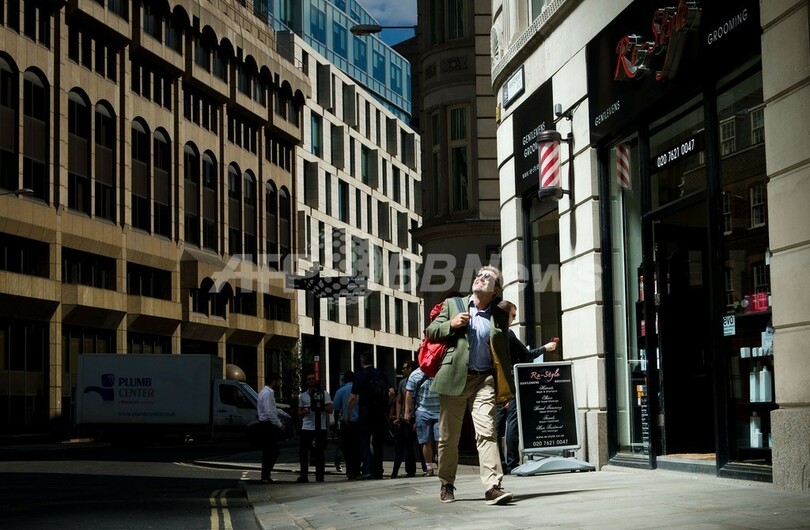 【9月1日 AFP】英ロンドン(London)中心部で「ウォーキートーキー(Walkie Talkie、トランシーバーの意)」と呼ばれる高層ビルが建設中だ。ガラス張りの外壁が凹面鏡のようにへこんだ独特のデザインのため、午後の早い時間帯には反射した日光が近隣の特定の場所に集中する。地元メディアによるとその場所の気温は周辺より高くなるという。(c)AFP