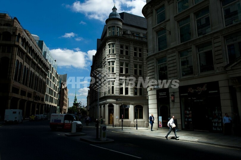 写真は、「ウォーキートーキー」ビルに反射した光で明るくなった一角を歩く人たち(2013年8月30日撮影)。(c)AFP/LEON NEAL