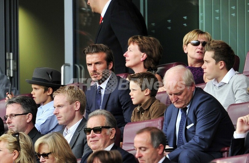 スタンドで観戦する元プロサッカー選手のデビッド・ベッカム(David Beckham)氏(2013年9月1日撮影)。(c)AFP/GLYN KIRK