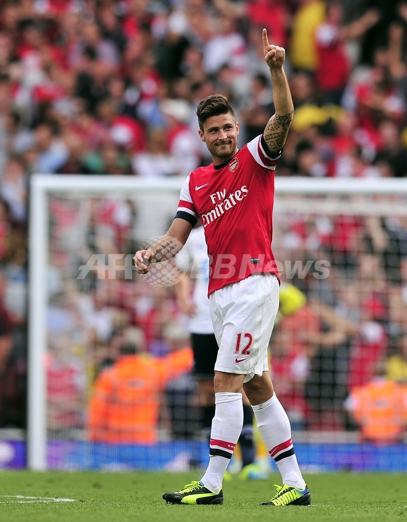 得点を決めて喜ぶアーセナルのオリヴィエ・ジルー(Olivier Giroud、2013年9月1日撮影)。(c)AFP/GLYN KIRK