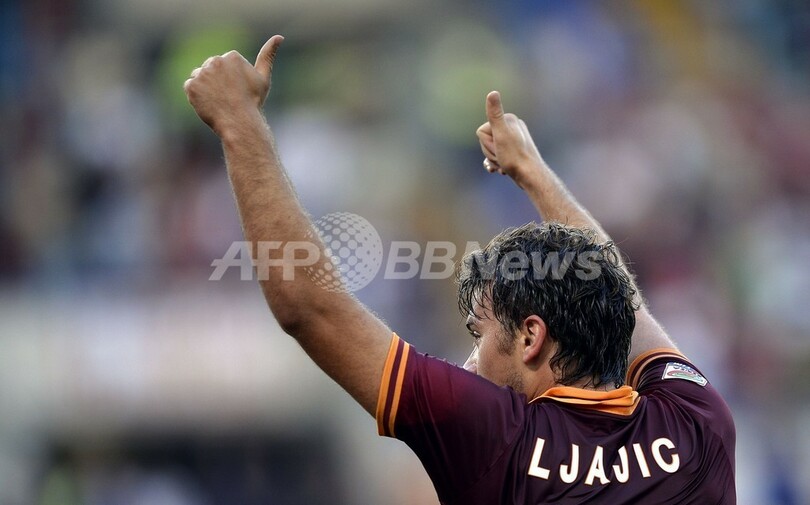 得点を挙げ歓喜するASローマのアデム・リャイッチ(Adem Ljajic、2013年9月1日撮影)。(c)AFP/FILIPPO MONTEFORTE