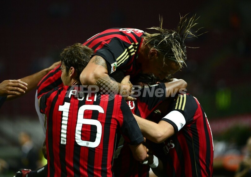 得点を喜ぶACミランの選手(2013年9月1日撮影)。(c)AFP/OLIVIER MORIN