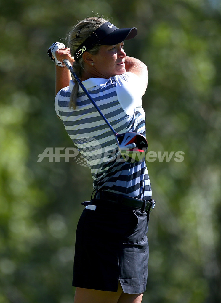 6番でティーショットを打つスーザン・ペターセン(2013年9月1日撮影)。(c)AFP/Getty Images/Jonathan Ferrey