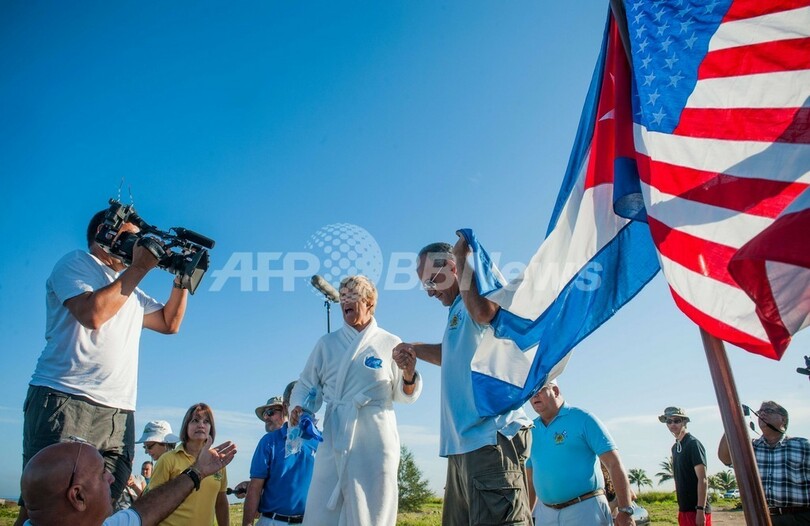 ニヤドさんが初めてフロリダ海峡横断泳に挑戦したのは1978年、28歳のときだった。昨年8月の4度目の挑戦では、雷雨やクラゲの大群に見舞われ、2日目で挑戦を断念した。ニヤドさんは、この挑戦に成功することで対立関係にあるキューバと米国の距離が近づけばいいと願っているという。(c)AFP