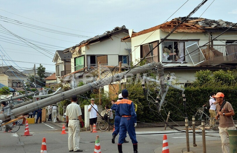 【9月2日 AFP】(写真追加)埼玉県越谷市など関東地方の一部地域で2日、竜巻とみられる突風が発生し、家屋の損壊などにより数十人が負傷した。越谷市内に入ったAFP記者によると、路上には屋根瓦が散乱し、電信柱が住宅に倒れかかるなど大きな被害が出ている。越谷市は、29人負傷、うち3人が重傷と発表した。