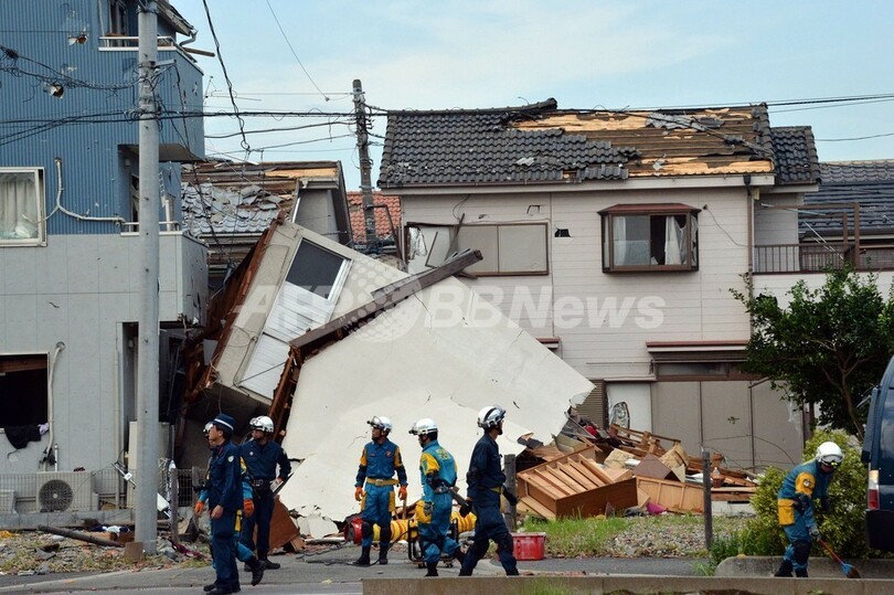 【9月2日 AFP】(写真追加)埼玉県越谷市など関東地方の一部地域で2日、竜巻とみられる突風が発生し、家屋の損壊などにより数十人が負傷した。越谷市内に入ったAFP記者によると、路上には屋根瓦が散乱し、電信柱が住宅に倒れかかるなど大きな被害が出ている。越谷市は、29人負傷、うち3人が重傷と発表した。