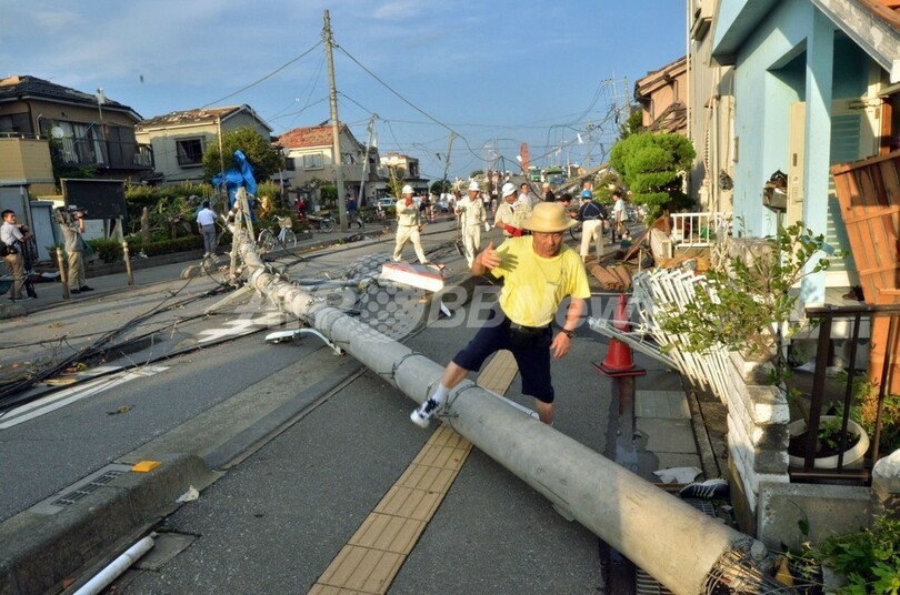 【9月2日 AFP】(写真追加)埼玉県越谷市など関東地方の一部地域で2日、竜巻とみられる突風が発生し、家屋の損壊などにより数十人が負傷した。越谷市内に入ったAFP記者によると、路上には屋根瓦が散乱し、電信柱が住宅に倒れかかるなど大きな被害が出ている。越谷市は、29人負傷、うち3人が重傷と発表した。