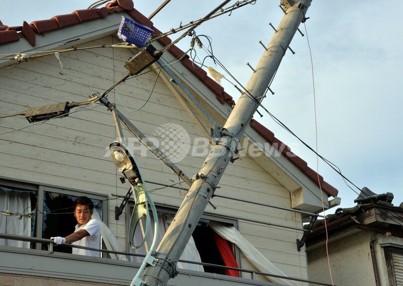 【9月2日 AFP】(写真追加)埼玉県越谷市など関東地方の一部地域で2日、竜巻とみられる突風が発生し、家屋の損壊などにより数十人が負傷した。越谷市内に入ったAFP記者によると、路上には屋根瓦が散乱し、電信柱が住宅に倒れかかるなど大きな被害が出ている。越谷市は、29人負傷、うち3人が重傷と発表した。