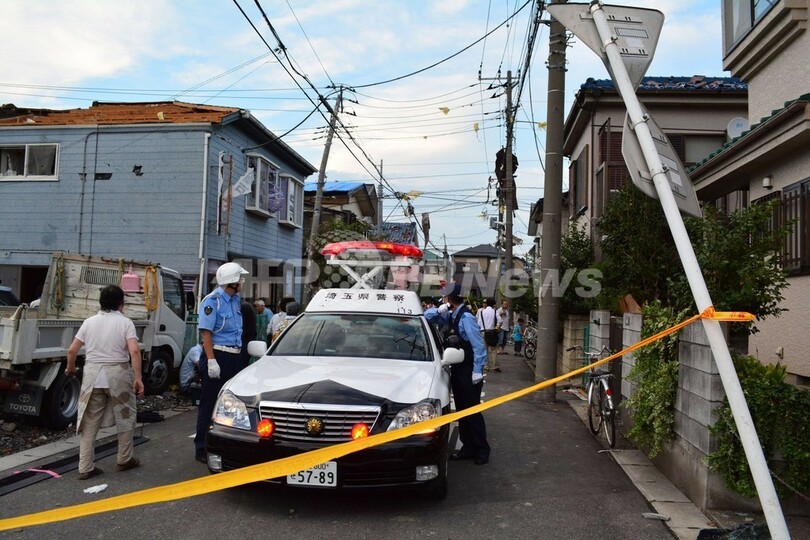 【9月2日 AFP】(写真追加)埼玉県越谷市など関東地方の一部地域で2日、竜巻とみられる突風が発生し、家屋の損壊などにより数十人が負傷した。越谷市内に入ったAFP記者によると、路上には屋根瓦が散乱し、電信柱が住宅に倒れかかるなど大きな被害が出ている。越谷市は、29人負傷、うち3人が重傷と発表した。