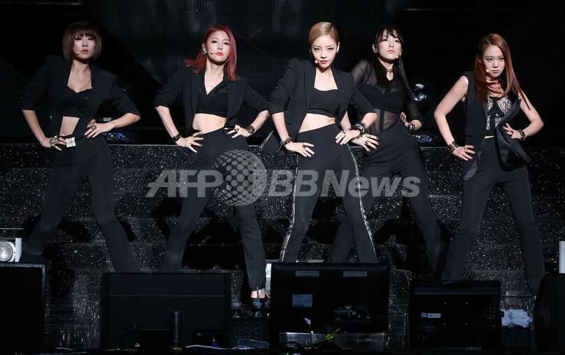 ガールズグループ「KARA(カラ)」が2日、4枚目となる新アルバム「Full Bloom」の発売を記念して、韓国・ソウル(Seoul)のユニクロアックスホール(UNIQLO-AX)でショーを開催した。写真は、同アルバム収録曲「Damaged Lady」を披露するKARAのメンバー(2013年9月2日撮影)。(c)STARNEWS