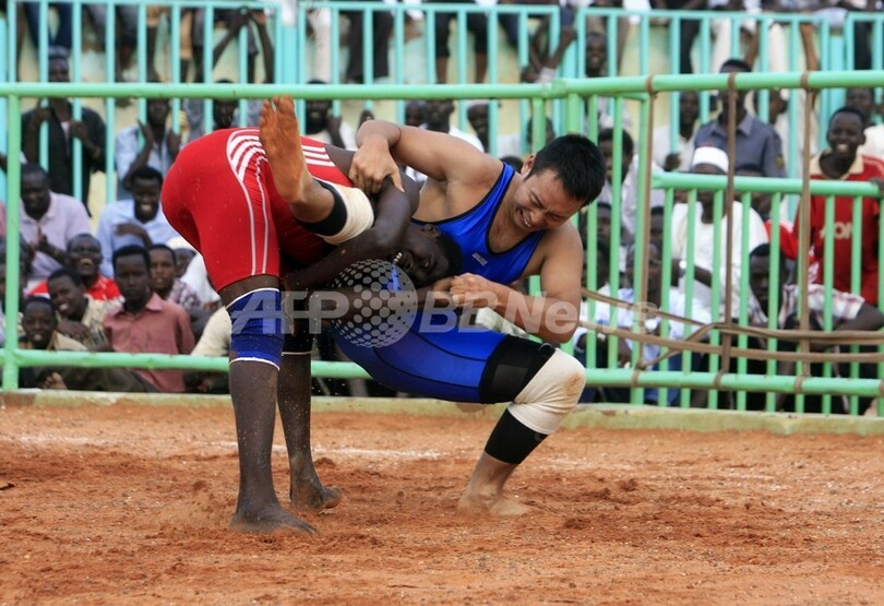 【9月6日 AFP】アフリカ・スーダンの山岳民族ヌバ(Nuba)の数千年に及ぶレスリングの歴史の中で、こんな出来事は一度もなかった──裸足に細身の青いタンクトップといういでたちで、砂で覆われた競技場に軽やかに日本の外交官が登場し、スーダンきっての強者に挑戦したのだ。