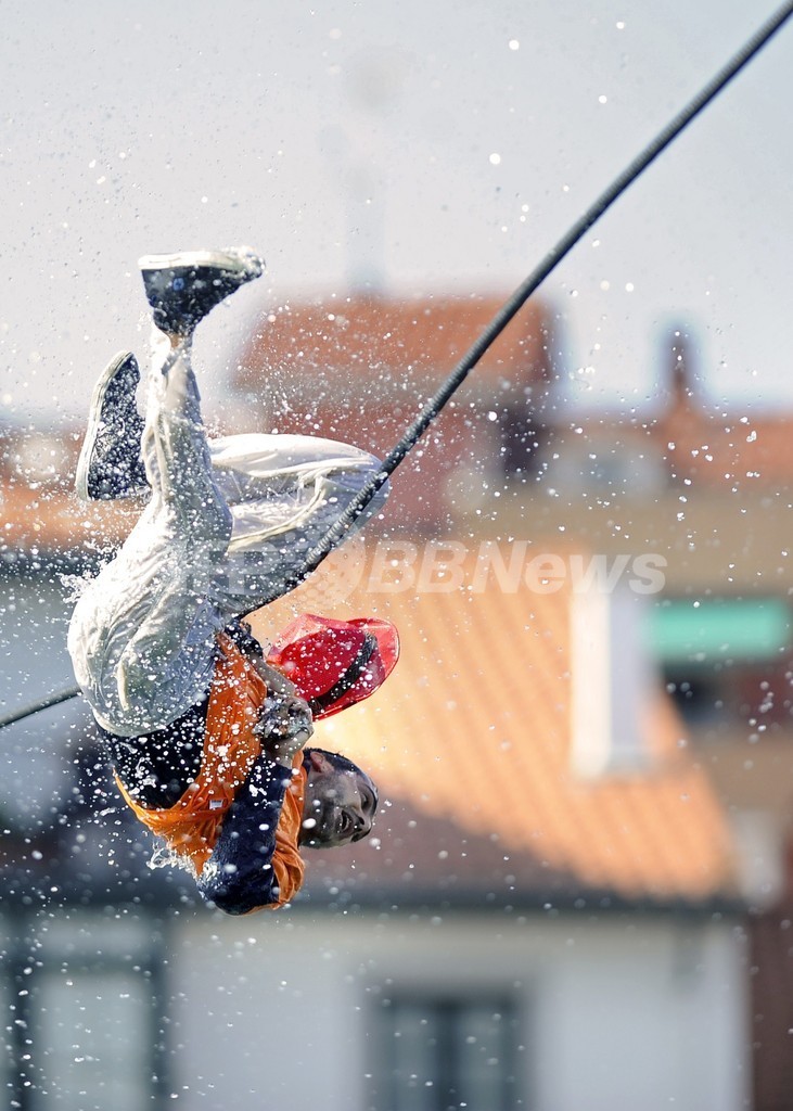 【9月6日 AFP】スペイン北部バスク(Basque)自治州の小さな港町レケイティオ(Lekeitio)で5日、毎年恒例の伝統の祭り「ガンの日(Antzar Eguna)」が開催され、若者たちが次々と水上に張られたワイヤからつり下げられた1羽のガンに飛びついては、水に落ちるまでの長さを競った。