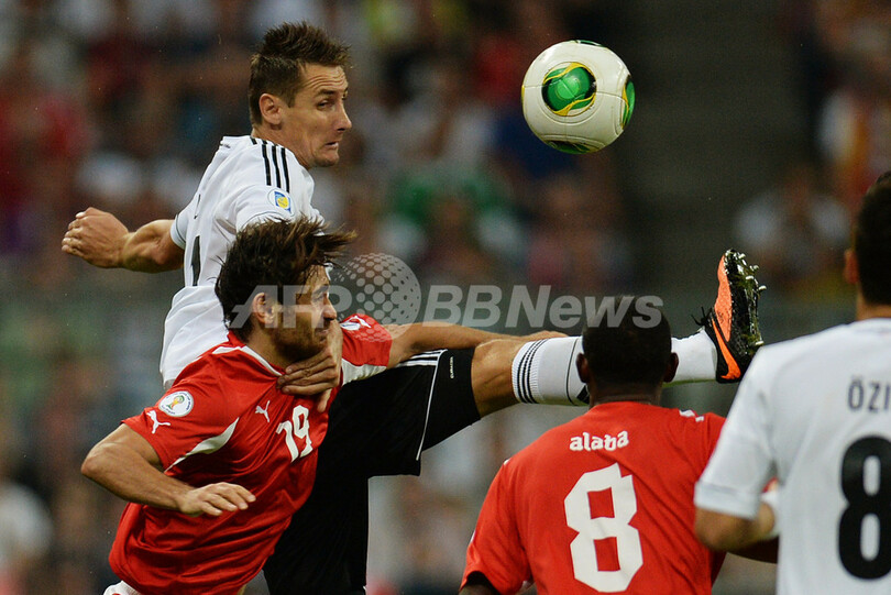 前半33分、その数分前にシュートを阻まれていたクローゼは、トーマス・ミュラー(Thomas Muller)のクロスがオーストリアのアレクサンダル・ドラゴビッチ(Aleksandar Dragovic)のすねに当たったところを押し込んで先制点を挙げた。