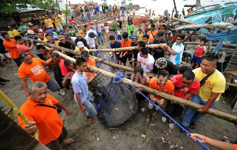 ニュース 環境・科学 若いジンベエザメの死骸が漂着、フィリピン 2013年9月6日 17:58 発信地:フィリピン [ アジア・オセアニア フィリピン ] このニュースをシェア ‹ › ❮ 16/16 ❯ フィリピンの首都マニラ(Manila)の西に広がるマニラ湾岸沿いの町タンザ(Tanza)の浜辺で5日、若いジンベイザメの死骸が打ち上げられているのが見つかった。体重は約300キロと推定されている。写真は、埋葬するために打ち上げられたジンベイザメの死骸を運ぶ地元住民ら(2013年9月5日撮影)。(c)AFP/TED ALJIBE 画像作成中 ! 【9月6日 AFP】フィリピンの首都マニラ(Manila)の西に広がるマニラ湾岸沿いの町タンザ(Tanza)の浜辺で5日、若いジンベエザメの死骸が打ち上げられているのが見つかった。体重は約300キロと推定されている。(c)AFP/TED ALJIBE 環境・科学 一覧へ> メディア・報道関係・法人の方向け 写真・動画 購入のお問合せ>