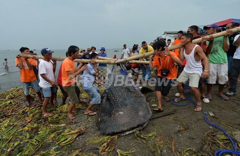 ニュース 環境・科学 若いジンベエザメの死骸が漂着、フィリピン 2013年9月6日 17:58 発信地:フィリピン [ アジア・オセアニア フィリピン ] このニュースをシェア ‹ › ❮ 6/16 ❯ フィリピンの首都マニラ(Manila)の西に広がるマニラ湾岸沿いの町タンザ(Tanza)の浜辺で5日、若いジンベイザメの死骸が打ち上げられているのが見つかった。体重は約300キロと推定されている。写真は、埋葬するために打ち上げられたジンベイザメの死骸を運ぶ地元住民ら(2013年9月5日撮影)。(c)AFP/TED ALJIBE 画像作成中 ! 【9月6日 AFP】フィリピンの首都マニラ(Manila)の西に広がるマニラ湾岸沿いの町タンザ(Tanza)の浜辺で5日、若いジンベエザメの死骸が打ち上げられているのが見つかった。体重は約300キロと推定されている。(c)AFP/TED ALJIBE 環境・科学 一覧へ> メディア・報道関係・法人の方向け 写真・動画 購入のお問合せ>