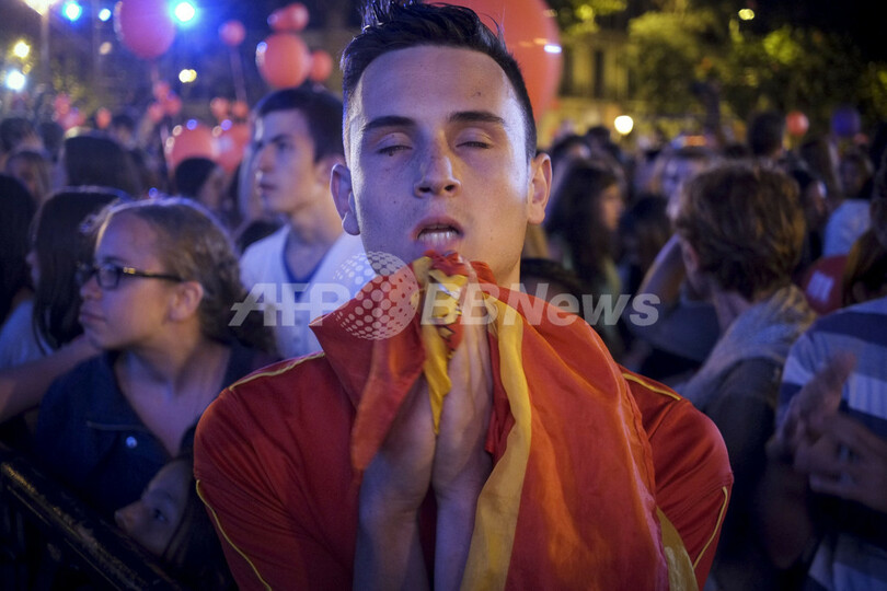 【9月8日 AFP】2020年夏季五輪の開催地を決める第125次国際オリンピック委員会(International Olympic Committee、IOC)総会で、スペインのマドリード(Madrid)が1回目の投票で除外されたことを受け、マドリード(Madrid)市内に集まった数千人の支持者は沈黙に包まれた。(c)AFP