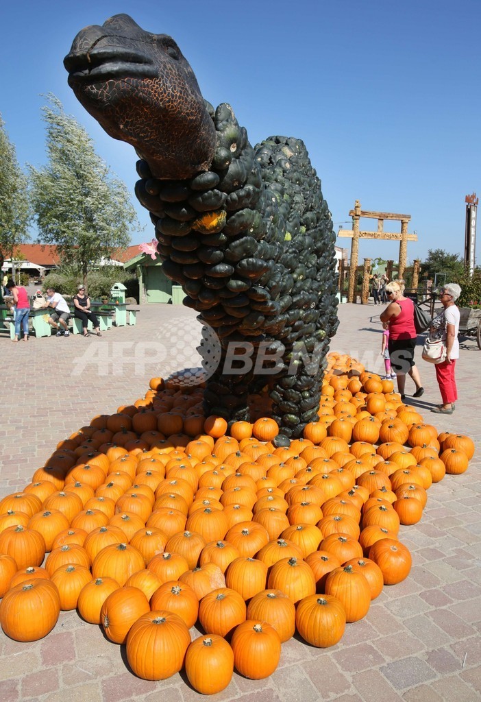 ニュース ライフ こぼれ話 全長15メートル!2000個のカボチャでできた恐竜 独 2013年9月9日 9:18 発信地:レーファースハーゲン/ドイツ [ ヨーロッパ ドイツ ] このニュースをシェア ‹ › ❮ 2/2 ❯ 体験型テーマパーク「カール体験村(Karls Erlebnis Dorf)に展示されている2000個のカボチャで作られた全長15メートルの恐竜の像(2013年9月7日撮影)。(c)AFP/DPA/BERND WÜSTNECK 画像作成中 ! 【9月9日 AFP】ドイツ北部レーファースハーゲン(Roevershagen)にある体験型テーマパーク「カール体験村(Karls Erlebnis Dorf)」で6日、2000個ものカボチャで作られた全長15メートルの恐竜の像がお目見えした。この恐竜は、7日にオープンした伝統的なカボチャ市場で展示されている。(c)AFP ライフ 一覧へ> メディア・報道関係・法人の方向け 写真・動画 購入のお問合せ>